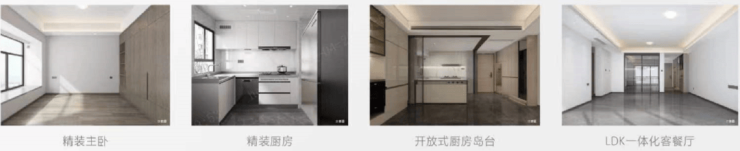 配置一线品牌厨具三件套、星级酒店品牌卫浴、大品牌收纳柜体;创新开放式厨房岛台,打造LDK客餐厨一体空间。