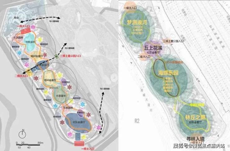 ️ “一轴两环三核心”立体社区园林,打造300米舒适步行半径:首层全架空活动空间(长者幸福、儿童成长、邻里中心、蓄能运动)、儿童乐园、分龄泳池、橙跑步道等多元化功能空间