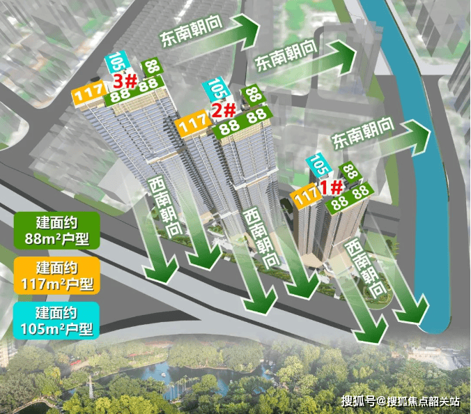 户型:88 平三房、105 平四、117 平四房