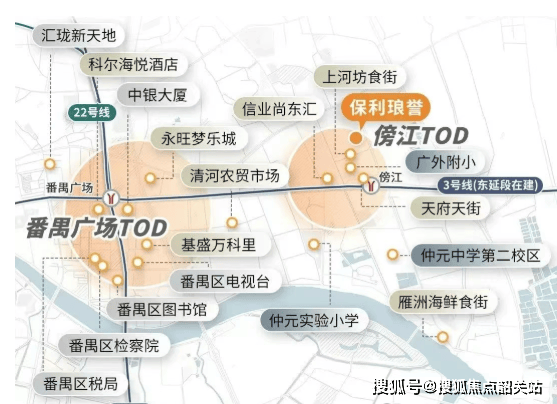 保利琅誉在交通方面具有显著优势。距离地铁3号线东延段傍江站约900米,步行大约13分钟,这一距离对于居民乘坐地铁出行较为便利。通过3号线可直达体育西,并且能在番禺广场实现与18号线、22号线等多轨串联。具体而言,去往万博,在傍江站乘坐3号线到番禺广场换乘18号线,全程2个站,耗时约33分钟;去往琶洲,需乘坐3号线到番禺广场换乘18号线,再到磨碟沙换乘8号线,全程12个站,耗时约59分钟;去往珠江新城,可从傍江站乘坐3号线直达,全程10个站,耗时约51分钟。