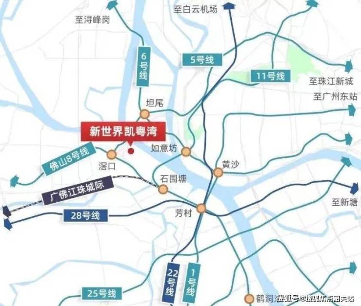 项目地处白鹅潭门户综合区,芳村大道以北,珠江沿岸核心地段,地理位置极其优越。周边路网发达,可快速连接珠江新城、越秀、佛山等地。公共交通方面,地铁5号线滘口站距项目约500米,无需换乘即可直达珠江新城,同时临近6号线坦尾站、在建的11号线石围塘站,未来还将引入28号线及22号线,形成多轨交汇格局。此外,区域内规划新增白鹅潭枢纽站,进一步强化与深圳、东莞等湾区城市的联动效应,真正实现“半小时生活圈”的都市通勤便利性。