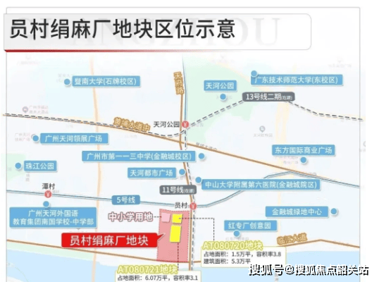 地铁出行方面,项目距离地铁 5 号线与 11 号线交汇的员村站约 900 米,步行仅需 15 分钟;地块东北侧距离员村站更是仅 150 米,双地铁加持出行无忧。11 号线作为广州首条环线,开通后可直达琶洲、天河 CBD 等核心区域,进一步提升了项目的交通便利性与资产价值。