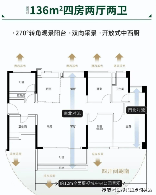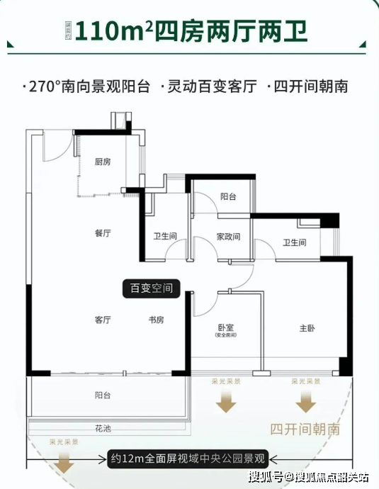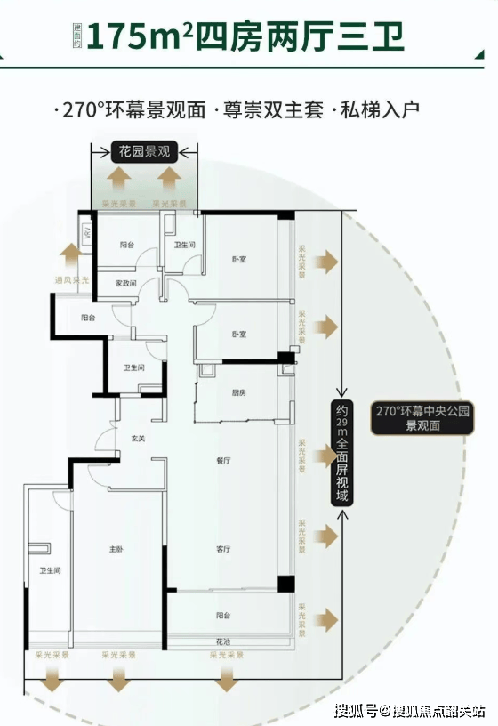 项目总占地约7万平方米,总建面近30万平方米,规划24栋建筑,仅872户,容积率控制得当,确保每户享有充足的采光与私密性。住宅产品全部为110至170平方米的四房大平层,契合改善型家庭对空间尺度与功能分区的高要求;层高2.9米,营造开阔通透的居住体验。梯户比仅为2梯2户或2梯3户,极大提升归家效率与尊崇感。