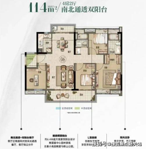 项目户型涵盖90-122平方米三至四房设计,户型布局科学,南向主卧及客厅空间开阔,保证充足采光。部分户型设有双阳台设计,提升空间利用率及室内外生活互动体验。