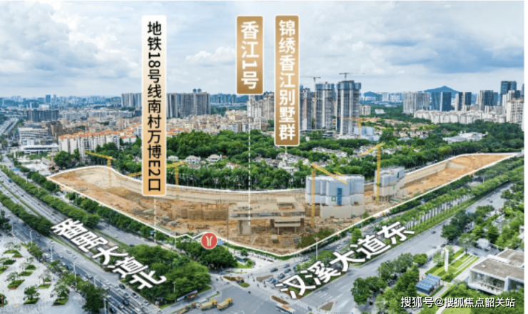 香江1号交通便利,距离地铁18号线南村万博站步行可达,地铁网络覆盖珠江新城、天河核心区及番禺主要商业区。项目周边主干道、快速路及高速路完善,多条公交线路接入,形成立体化出行网络,自驾可直达长隆旅游区、万博CBD及天河中心。