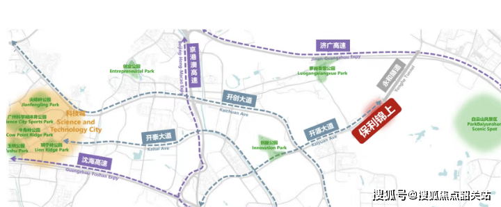 项目位于天河智慧城与黄埔科学城双城交汇核心,地处广州第三发展中轴线“科技创新轴”,承接天河外溢需求。