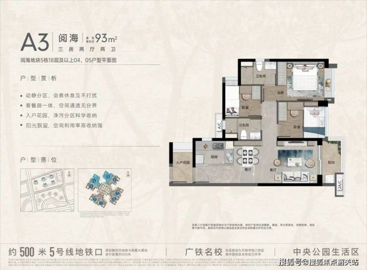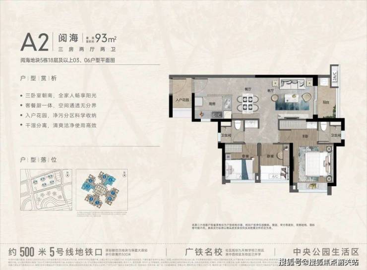 【阅海93㎡三房两厅两卫|A2-03、06】,南向三开间|客餐厨一体|入户花园