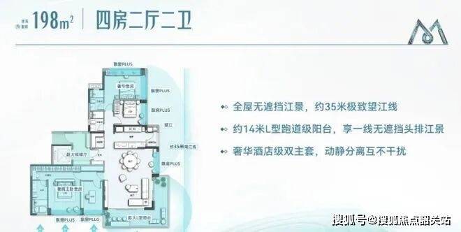 198㎡户型: 空间更为宽敞奢阔,能更好地展现江景大宅的风范。具备户户望江的优势,270°无边界巨幕江景尽收眼底。户型设计注重空间的通透感与舒适性,南北通透的格局,让阳光与江风自由穿梭。主卧空间豪华,配备独立的衣帽间与卫浴空间,享受高品质生活。厨房的餐厨 Pro Max 升级,打造开放式厨房,提升家庭互动与生活品质。