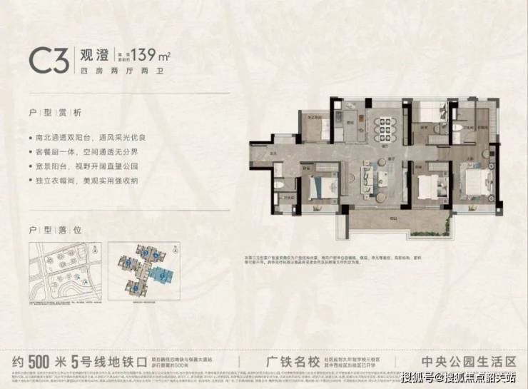 阅海139㎡四房两厅两卫:南北通透双阳台,独立衣帽间,客餐厨一体。