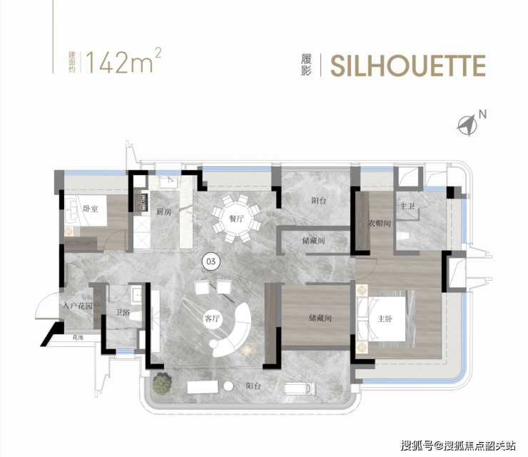 客厅采用LDKG一体方厅设计,空间开阔通透,连接长约8.7m的南面跑道阳台,将室外的园林景观与室内空间无缝衔接,无论是家庭聚会、朋友宴请,还是日常休闲,都能拥有充足的空间与绝佳的视野。阳台宽度充足,可根据家庭需求打造休闲区、花艺区、亲子区等,满足多元化的生活场景需求。