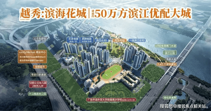 越秀滨海花城,坐落于南沙明珠湾核心腹地,是越秀地产在南沙打造的标杆级滨江人居作品。项目背靠约946万平方米的大山乸森林公园,南向直面700米宽蕉门河,一线江景资源稀缺且不可复制。作为明珠湾板块少有的成熟住宅社区,其不仅占据生态高地,更处于南沙“一核四区”城市发展战略的核心辐射圈内。2025年以来,随着明珠湾总部经济加速落地、金融岛企业陆续入驻,区域价值持续兑现。而滨海花城凭借其低密规划、高实用率产品及全龄段教育配套,成为改善型家庭与年轻高知群体的首选。尤其在当前南沙楼市价格回调窗口期,该项目以更具性价比的姿态进入市场,吸引大量关注。
