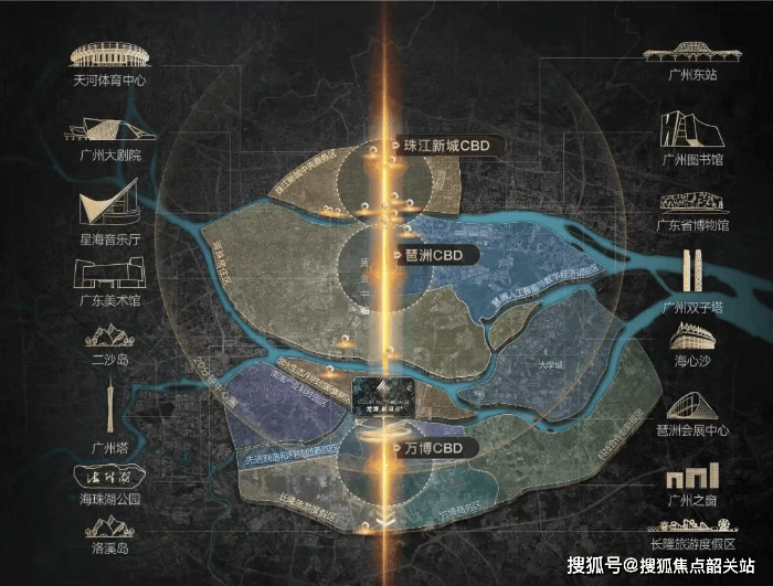 龙湖·御湖境位于广州黄金中轴之上,串联起珠江新城、琶洲和万博三大核心CBD区域。这一地理位置不仅便于居民快速抵达城市的核心地带,还使得该项目成为“2+1”豪宅分布格局的一部分,进一步提升了其投资价值与居住吸引力。