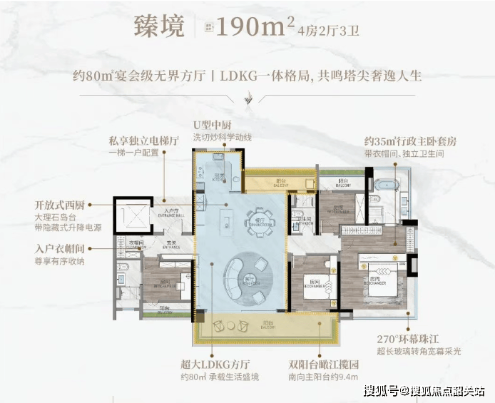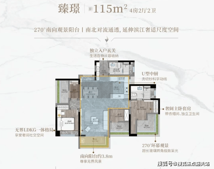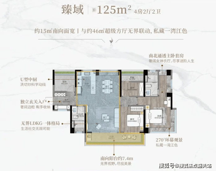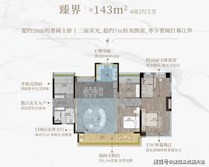 龙湖·御湖境推出的户型包括115㎡、125㎡、143㎡和190㎡四种全四房产品,所有户型均采用豪宅标配的方正格局设计,实现约100%的使用率。特别值得一提的是,270°主卧环幕观景的设计,让每一位业主都能享受到极致的视觉盛宴。