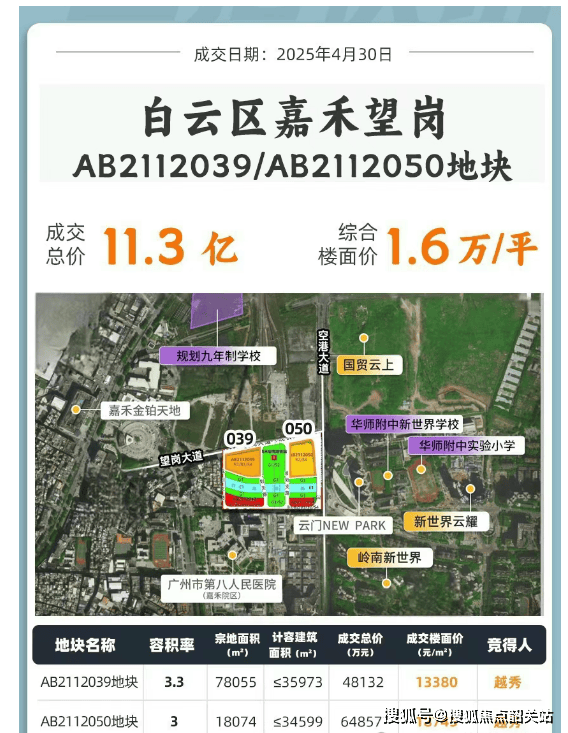 越秀·贝好家·嘉悦云启落子白云嘉禾望岗核心,由越秀地产以4.81亿元竞得AB2112039与050两宗地块,是白云近年少有的真地铁上盖TOD项目。项目总占地面积约9.6万㎡,计容建面约16.8万㎡,容积率3.15,绿化率35%,规划4栋27-37层高层住宅,总户数约580户,车位配比高达1:2。产品主打建面约83-126㎡全南向三至五房,全面采用广州新规设计,高赠送、高实用率。尤为特别的是,项目采用“大盖板”开发模式——住宅整体抬高15-16米,盖板下为公配与车库,盖板上为居住空间,有效规避地面噪音与人流干扰,营造“云端浮岛”式居住体验,在白云刚需改善市场中树立新规产品新标杆。
