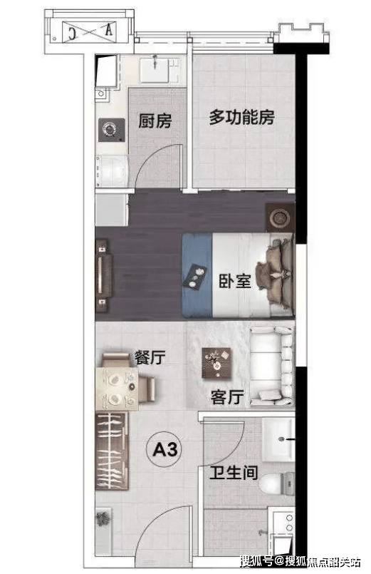 轻奢平层公寓 | 46.22㎡二室二厅一卫