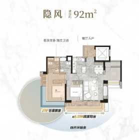 建面约92㎡:该户型注重空间利用效率,四开间朝南,配备约6.15M阔景阳台,主卧拥有270°巨幕飘窗,提供了开阔的视野和充足的自然光。