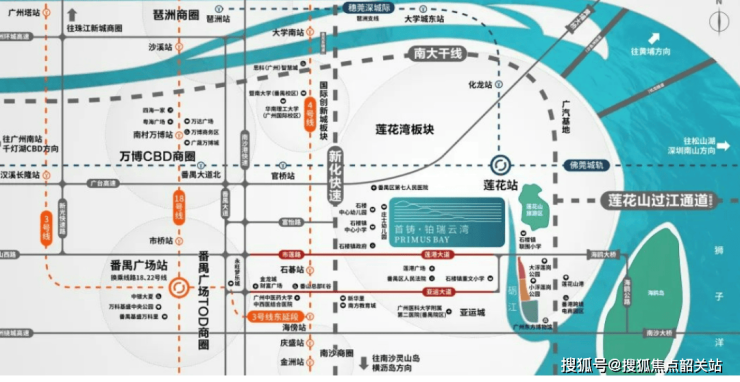 交通以自驾为核心,距4号线石碁站3.9公里(驾车10分钟,公交接驳25分钟),更适合有车一族。通过港莲大道、石清公路快速接驳南沙港快速、广澳高速,30分钟达万博CBD,40分钟抵珠江新城。未来南大干线东延段(规划)通车后,将横向贯通番禺,形成“高速+干线”的立体路网,构筑莲花湾30分钟生活圈,虽轨交依赖接驳,但自驾高效性满足日常通勤与周末休闲需求。