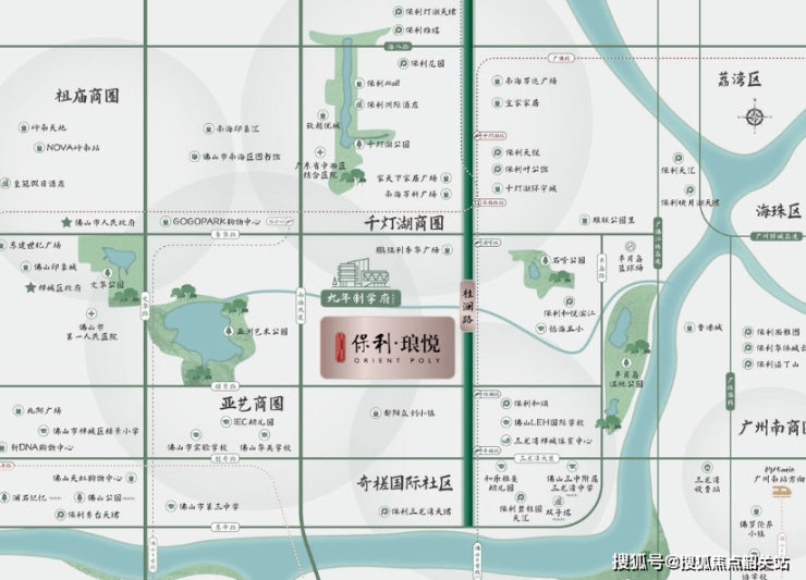 保利琅悦地理位置优越,位于桂城轴心,紧邻佛山的主要交通动脉——桂澜路和绿景东路,便捷通达广佛两地。项目周边规划了多条轨道交通线路,如地铁6号线(规划中)、地铁4号线(建设中)等,虽然目前距离现有地铁站较远,但未来交通便利性有望进一步提升。
