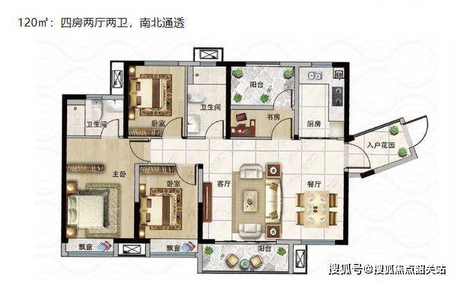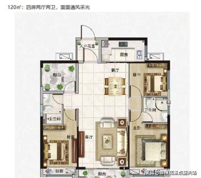 120㎡四房两厅两卫户型(面面通风采光)