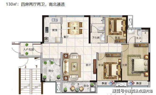 130㎡四房两厅两卫户型(南北通透)