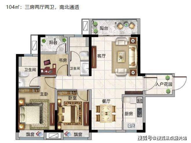 104㎡三房两厅两卫户型(南北通透)
