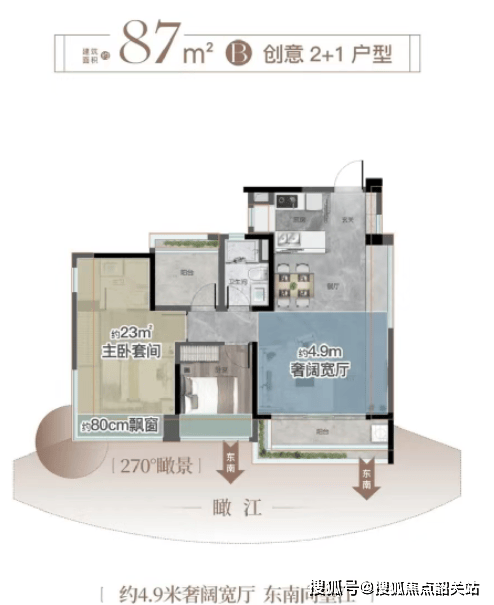 87㎡B户型:全盘“断货王”,销量冠军。约4.9米宽幕客厅,营造大气格局;近110%使用率拓展生活志趣;约23㎡酒店式主卧,尊享私密舒惬。