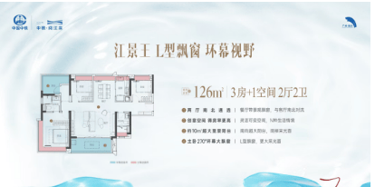 126㎡的户型则是 “江景王”,南向无遮挡江景视野,独立餐厅设计,南北通透。主卧 L 型双面采光,江景视野更开阔,同时主卧还设有创意空间,使用场景更灵活。