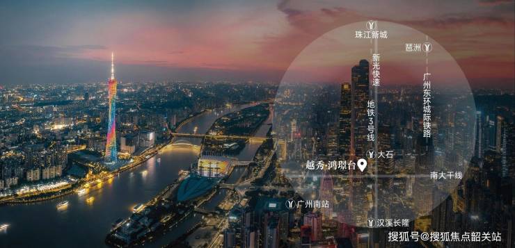 1. **城市中轴绝版区位**:广州第三中轴作为城市发展核心脉络,沿线土地供应稀缺,尤其是万博CBD周边,住宅用地近乎断供。越秀·鸿璟台占位中轴番禺首站,是近年少有的新盘供应,区位价值不可复制。