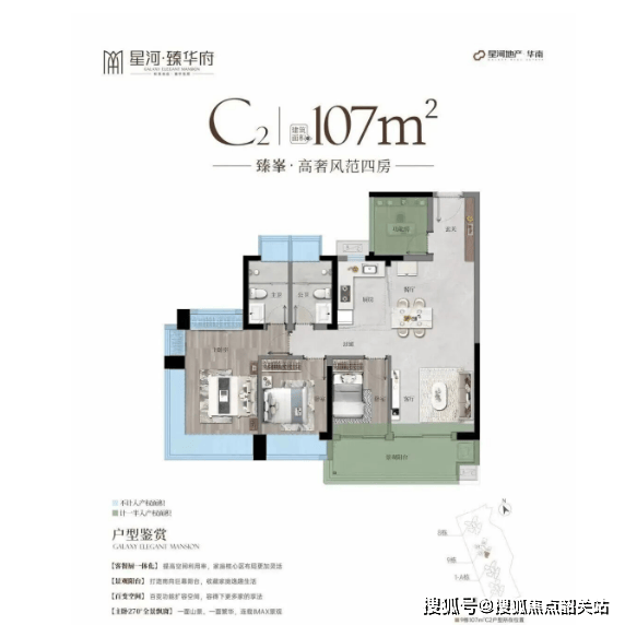 星河臻华府主力户型涵盖建面约85㎡至128㎡,精准覆盖刚需上车、二胎改善及三代同堂等不同家庭结构。其中,85㎡三房实现约100%使用率,LDKG一体化宽厅搭配270°观景主卧,空间感远超面积限制;95㎡三房+1灵动空间,入户玄关飘窗设计提升归家仪式感;107㎡四房做到四开间朝南,全屋通透无暗房;128㎡四房更配置迎宾入户花园与宽幕景观阳台,彰显进阶生活格调。所有户型均采用新规设计,阳台、飘窗等赠送面积最大化,实际得房率接近100%,在同价位产品中极具竞争力。无论是首次置业还是置换升级,都能在此找到契合生活理想的理想居所。