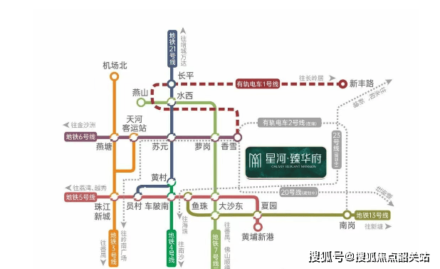 项目地处科学大道与开创大道交汇处,位于广州“东进”战略的核心腹地——黄埔科学城。作为全市GDP排名第二的经济强区,黄埔2024年前三季度GDP达6167.68亿元,聚集国家级“专精特新”企业118家、“单项冠军”23家,科研机构与人才密度居全市之首。星河臻华府正位于总部经济走廊之上,周边汇聚雪松控股、多益网络、香雪制药、南方电网等百余家总部企业,产业能级强劲。交通方面,项目虽距地铁6号线香雪站约2公里,但可通过公交或有轨电车便捷接驳;同时邻近已通车的7号线、21号线,并预留20号线、23号线(规划中)发展空间。此外,香雪站始发的有轨电车1/2号线贯穿片区,构建起高效多元的立体出行网络,轻松连接天河、萝岗、增城等城市组团。