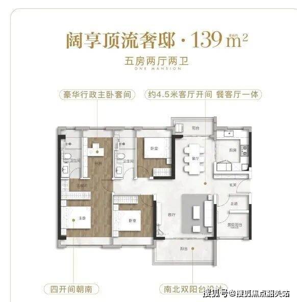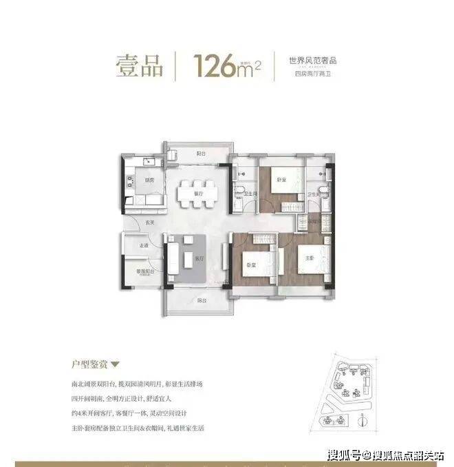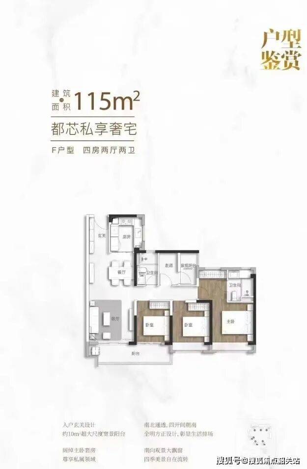 空间布局:户型方正,空间利用率高。动静分区合理,客厅与餐厅相连,形成开阔的公共活动区域,连接超10米宽幕大阳台,增加采光与通风,提升空间通透感。卧室布局紧凑,尺度适宜,满足基本居住需求。