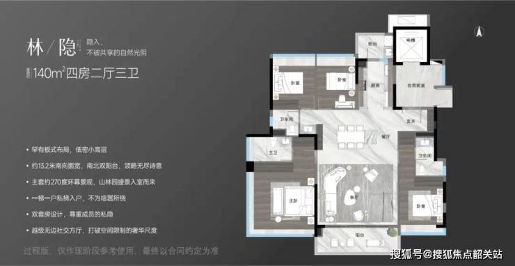 越秀观樾建面约190平的四房户型设计,确实展现了其卓越的品质和出色的居住体验,每一项细节都彰显着广州“天花板水平”的居住标准。
