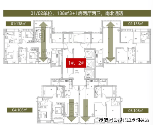 建面约138㎡四房两厅两卫:南北通透双阳台,主卧套房设计,L型厨房衔接餐客一体化大厅,总价约483万元/套起;