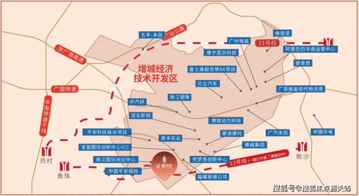 广州东目前已吸引阿里巴巴、广汽本田、富士康超视堺8K、维信诺、日立汽车马达、中国汽车技术研究中心华南总部、侨梦苑、福耀玻璃、平安科技硅谷等强企聚集于此,打造集金融、汽车、电子信息科技三大千亿产业集群,创跑东部CBD发展未来,催生再进化的珠江新城。