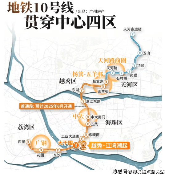 越秀江湾潮起坐落于海珠区环岛路核心地段,隶属于南洲板块,是该板块首个亲江社区,地理位置兼具自然静谧与交通便捷双重优势。相较于北面老城区的拥挤与琶洲经济中心的快节奏,这里环境更为安静宜居,同时坐享“江景资源+核心交通+成熟配套”的三重红利。交通通勤网络立体高效,构建起15分钟黄金生活圈:地铁方面,项目步行约700米(百度测距)或乘坐家门口的公交530线一站即达10号线大干围站,该线路已正式运营,可一条地铁直通珠江新城板块,串联天河、越秀、海珠、荔湾四大核心区域,预计2025年全线通车后,出行效率将进一步提升;自驾出行同样便捷,周边环岛路、海珠湾隧道等交通设施完善,可快速通达广州各核心城区,无论是日常通勤还是跨区出行都毫无压力。区位价值持续升级,项目旁邻总投资40亿的广百海港城,集商务、购物、酒店于一体,预计2025年底开业,未来将大幅提升区域商业能级,让业主在家门口即可享受高品质消费体验,真正实现“承包所有便捷与繁华”的居住愿景。