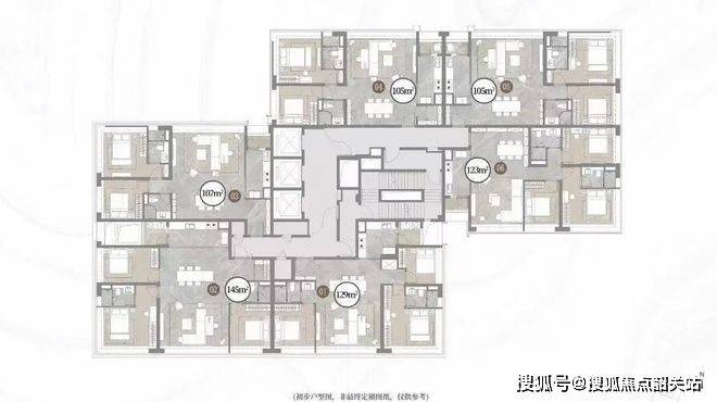 公寓部分主打住家型设计,产品可通明火,这在广州公寓市场里属于比较友好的配置。个别户型带内阳台,使用起来更接近常规住宅。外立面采用玻璃幕墙,现代感强,很受年轻群体欢迎。户型面积段覆盖比较广,从86㎡起步,到225㎡不等,甚至有425㎡的纯粹大平层。首推的是C地块C2栋,35层高,采用3梯6户布局,单层层高3.5米,空间尺度感不错。