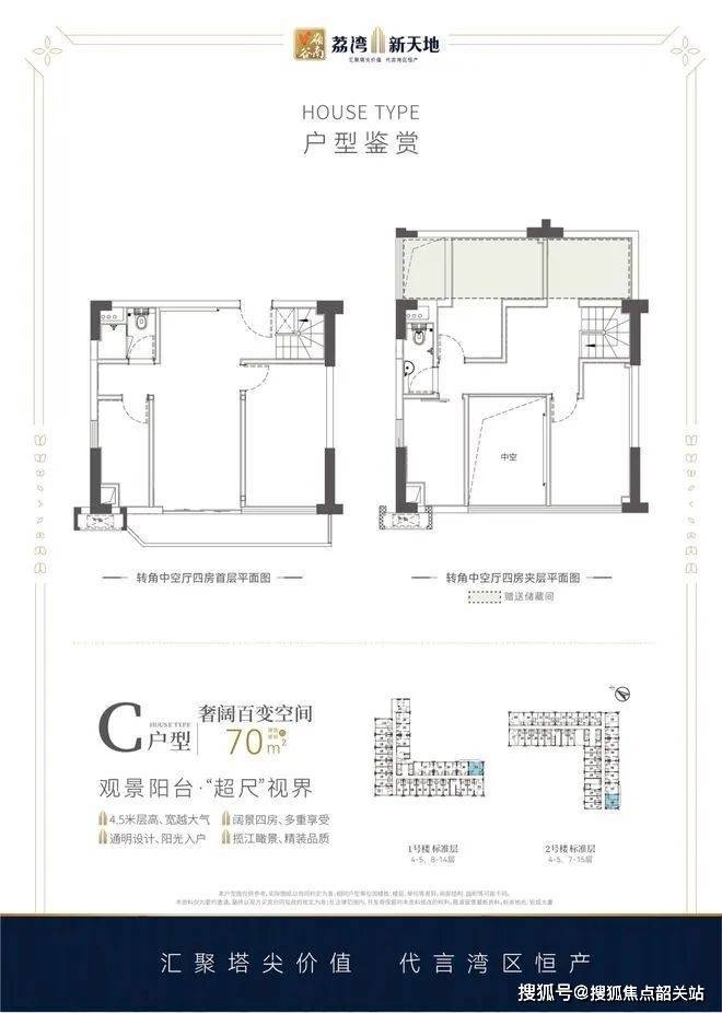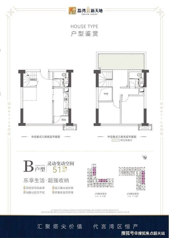 荔湾新天地一期地标双子塔首发,提供36-93㎡的双钥匙/两至五房LOFT户型选择。所有户型均设计了4.5米复式挑高,实现了买一层用两层的效果,部分户型还允许明火使用并配备阳台和全明房,适合投资租赁、自用自营或创业办公等多种用途。