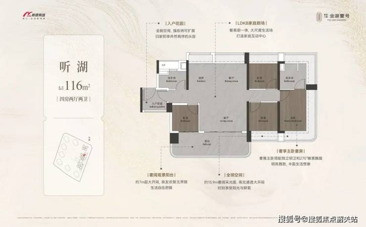 户型优势:全南向低密湖居四房,满足多样需求