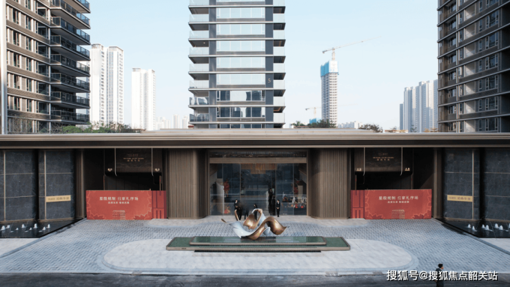 远远望去,招商华玺一期采用钻感玻璃幕墙搭配银白色金属线条,整体立面呈现出轻盈而克制的现代感。不同于传统豪宅对厚重石材的依赖,项目通过材质对比与比例控制,营造出一种“低调但不可忽视”的视觉识别度。尤其在夜幕降临时,灯光系统将门庭、水景与建筑轮廓柔和勾勒,既有酒店式归家仪式感,又避免过度张扬。这种对尺度与细节的精准拿捏,正是其“顶级松弛美学”的外化表达。