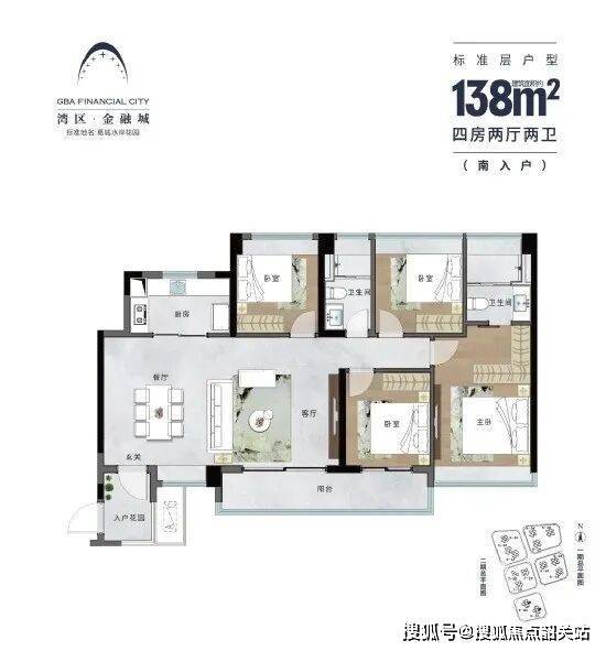 135㎡4+1室2厅2卫:豪华景观阳台,超大餐客通厅,提供墅级居住体验。