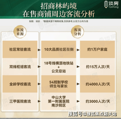 综合全域资源与产品核心优势,招商林屿境立足广州南沙明珠湾横沥岛核心,以广州首个四代宅为核心卖点,汇聚品牌、区位、交通、教育、生态、商业、产品七大核心价值,成为南沙乃至整个湾区极具竞争力的改善人居作品。品牌层面,央企招商蛇口实力开发,招商积余高端加持,双强品牌保驾护航,工程品质、交付能力、物业服务全面保障,资产稳定性更强。区位层面,占位广州南拓战略核心、大湾区黄金内湾关键节点,紧邻横沥TOD综合体,片区规划能级高,产业与城市配套持续落地,长期发展潜力深厚。交通层面,18号线超级快线直达珠江新城,深南中城际规划加持,多维立体交通串联湾区四城,跨城通勤高效便捷。教育层面,社区自建托育与幼儿园,规划公办九年一贯制学校,周边优质民办名校环绕,全龄段教育体系完善,满足家庭长期教育需求。生态层面,蕉门河+湿地公园+城市公园多维生态环绕,社区高密绿植园林搭配户户空中庭院,内外双氧吧格局,康养宜居属性突出。商业层面,社区自带便民商业与高端会所,周边规划百万方级大型商业集群,多元业态逐步落地,平衡日常便利与高端消费。产品层面,2.5超低容积率纯板楼小高层,两梯两户专梯专户,110-112㎡纯粹大平层社区,无刚需小户型混杂,居住圈层纯粹,最高140%超高使用率搭配6米挑高空中庭院,城芯稀缺四代宅产品,差异化优势显著。多重价值叠加之下,项目兼具自住舒适度、度假休闲属性与资产增值潜力,是湾区高净值人群低密宜居、城芯置业、长线投资的优质选择。
