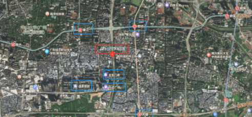 项目周边拥有丰富的地铁资源,包括3/8/10/11号线,四条地铁线两两垂直交叉,形成了一个长方形的包围圈。虽然四个地铁站距离都在1.5至1.8公里之间,但通过这些线路可以轻松抵达广州的主要商圈和地标,如珠江新城、体育西、琶洲等地。