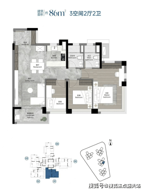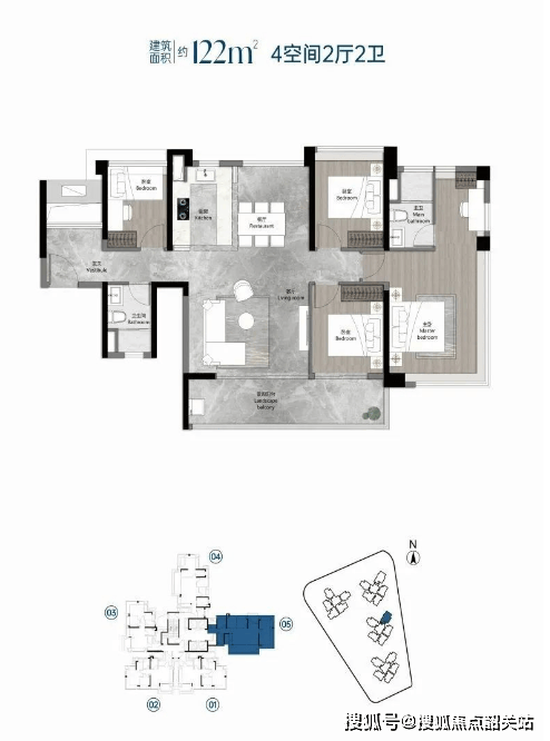 项目主打新规户型,使用率高达120%,涵盖建面约88至120平方米的三至四房户型,所有户型均为全南向设计,保证了良好的采光和通风效果。具体户型如下: