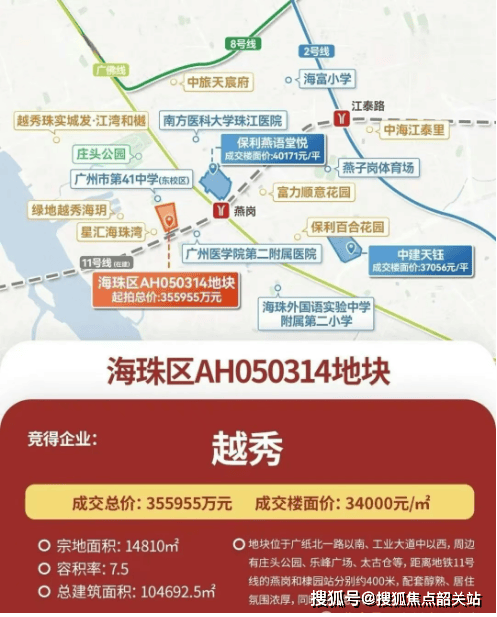 项目地处海珠区重点开发的广纸板块,地理位置优越,交通便利。距离广佛线燕岗站仅约400米,距离广州首条黄金环城线11号线棣园站约250米,轻松连接琶洲、珠江新城等核心商圈,为居民提供了便捷的生活体验。