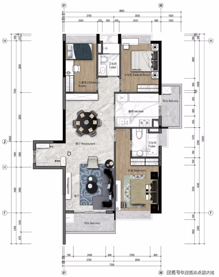 82㎡户型,乍看直厅户型,做了3房好像整体也比较中规中矩是不是?