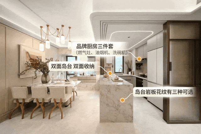 岛台岩板、玄关拼花、地砖样式……均可个性化定制,让精装房脱离流水线,真正成为生活态度的延伸。