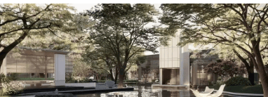 社区的园林设计更是项目的点睛之笔,灵感源自纽约安缦酒店的设计哲学,精心打造了“归心六屿”雅奢之旅。入口处以墨玉水盘打造酒店式环岛前庭,近50米的恢弘城市序厅,为归家的每一步都充满了仪式感。社区内部设有六大主题园林场景,全方位满足业主的精神与物质需求。首先是“泠汀水院”,以琉璃光塔与约160米林影游廊为核心,营造出静谧高雅的氛围,是业主晨练、冥想的绝佳场所。其次是“林下浮岛花园”,包含隐心茶坞、大树剧场、围炉茶叙及临水浮台四大场景,为邻里社交提供了温馨自然的平台,让茶香与书香在社区弥漫。第三是“无界漂浮之境”,拥有无边泳池、层级跌水、度假躺床及水岸平台,仿佛置身海岛度假胜地,让业主足不出户即可享受奢华的休闲时光。此外,还有近600平米的大地系儿童乐园,配备植物乐园与原野树屋,让孩子们在自然中自由奔跑,唤醒天性。