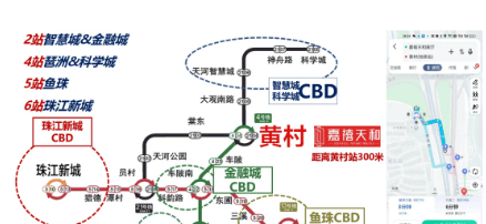 交通方面,嘉禧天和占据得天独厚的优势。家门口就是 21 号线与 4 号线的地铁黄村站,仅离项目 200 米,步行 3 分钟即可到达。通过地铁出行,可轻松通达广州全城,2 站至天河智慧城、2 站到金融城、4 站抵琶洲、4 站达科学城、5 站至鱼珠、6 站到珠江新城,便捷的交通网络让出行变得随心所欲。
