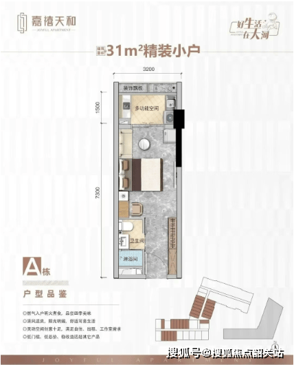 嘉禧天和公寓产品户型面积涵盖 28 平 - 31 平 -51 平 - 85 平,使用率高达 80%,有效提升室内实用空间。厨房可通燃气,让业主享受与住宅同等的生活品质。户户带外阳台,打破传统公寓封闭弊端,3.15 米层高,以豪宅高度增加生活的幸福指数。
