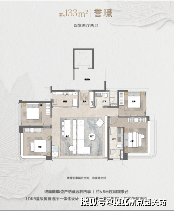 建面约133㎡誉璟户型,是片区极具稀缺性的入门级改善产品,全南沙同面积段稀缺独梯独户配置,大幅提升居住私密性与专属感,纯南向单边户布局,规避楼栋遮挡,约6.8米超阔观景台加持,小面积也能拥有大平层的观景体验与空间质感。四房空间规划,功能性拉满,完美适配刚需进阶改善群体,以适中的面积、亲民的入手门槛,享受横沥岛核心配套、一线江景资源与高端社区品质,性价比优势显著。